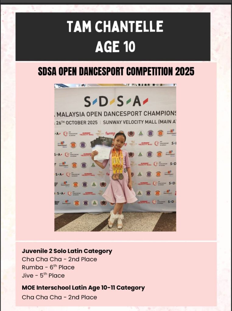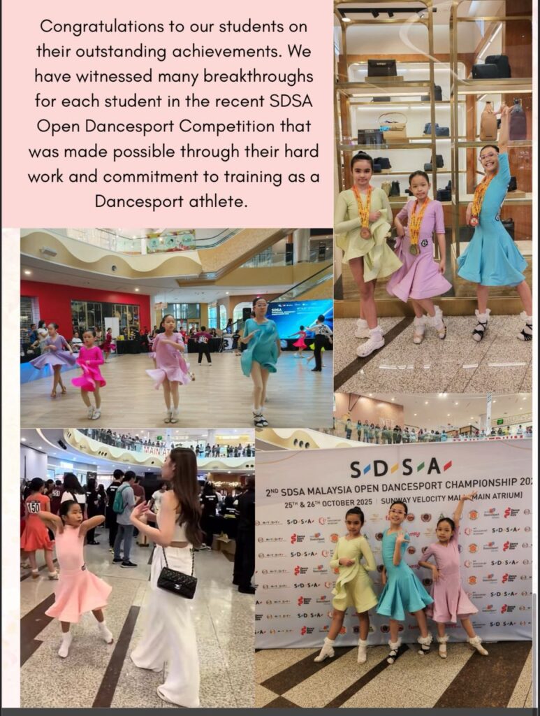 Congratulations to our dance students for achieving excellent results at the recent 2ND SDSA Malaysia Open DanceSport Championship’s Competition! Your dedication and talent make us proud. Keep shining and inspiring on stage, and may your performances continue to dazzle!
